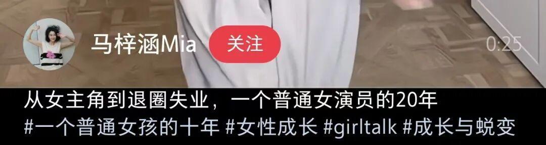 近日,女演员马梓涵在社交平台发布了一段视频,并配文称:“从女主角到退圈失业,一个女演员的20年。”